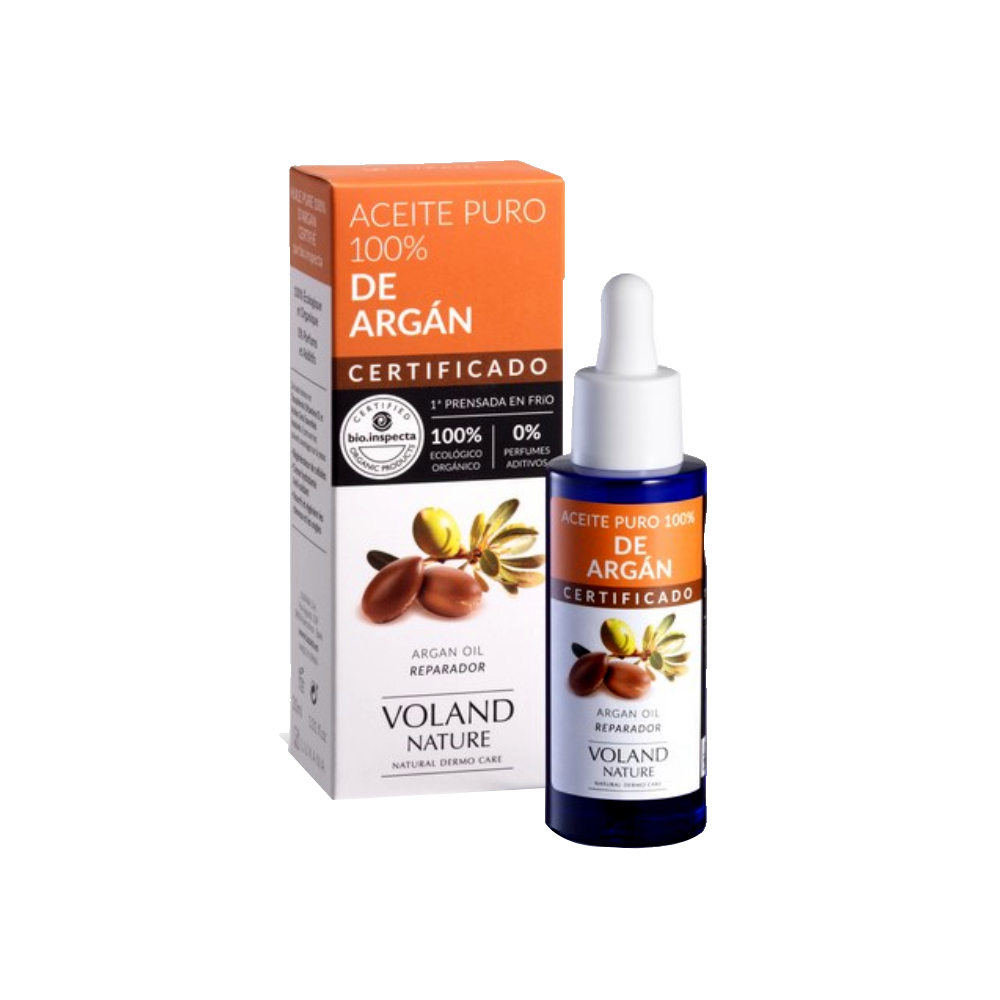 Aceite puro 100% de argán voland – 30 ml. descubre el poder del aceite puro de argán 100% de voland, proveniente de la agricultura ecológica. este aceite es un potente antioxidante y regenerador natural, gracias a su alto contenido en vitamina e. devuelve la hidratación y elasticidad a tu piel y cabello, dejándolos suaves y revitalizados.beneficios:potente antioxidante: protege tu piel y cabello de los radicales libres.regenerador natural: promueve la renovación celular para una piel más joven y saludable.hidratación intensa: devuelve la humedad y elasticidad perdidas.multiuso: ideal para uso diario en uñas, cara, cuerpo y cabello.modo de uso:uñas: aplica una pequeña cantidad en las cutículas y uñas para fortalecerlas y mantenerlas hidratadas.cara: utiliza unas gotas como parte de tu rutina de cuidado facial para una piel suave y radiante.cuerpo: masajea en áreas secas para mejorar la textura y elasticidad de la piel.cabello: aplica en las puntas para reducir el frizz y aportar brillo.disfruta de los beneficios de este versátil aceite y transforma tu rutina de belleza con aceite puro de argán voland.
