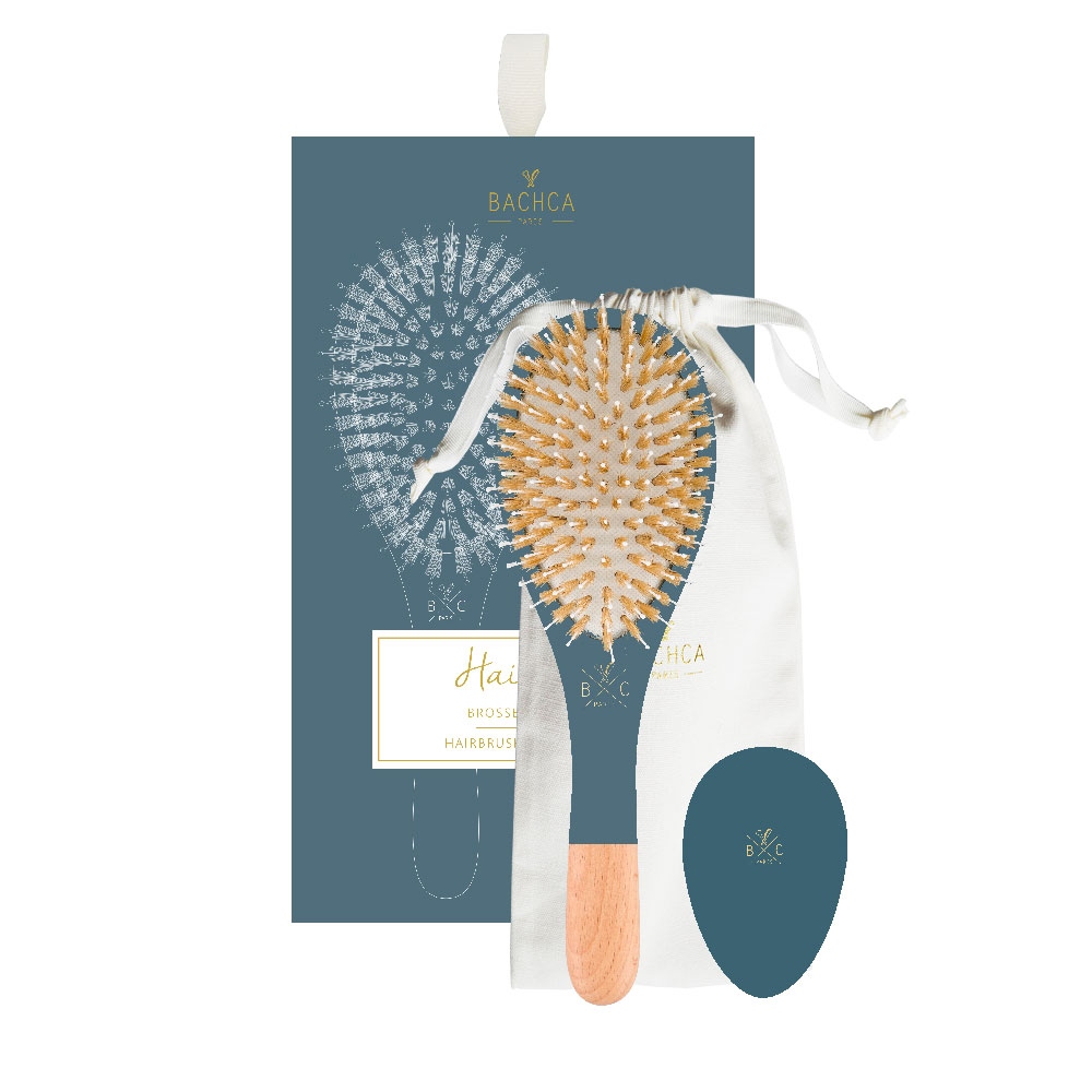 El kit de cabello bachca contiene un cepillo para el cabello, un espejo y una bolsa de algodón. estas herramientas de diseño particularmente elegante están meticulosamente esculpidas a mano y hechas de madera de haya para mayor durabilidad.puede usar el cepillo tanto en cabello seco como húmedo para desenredar y alisar el cabello. recomendamos que cepilles tu cabello al menos dos veces al día. para limpiar su cepillo bachca , elimine el cabello atrapado entre los pasadores, luego use una dosis de champú suave, frote suavemente y enjuague bien. seque su cepillo en una toalla limpia, con las puntas hacia abajo, durante aproximadamente un día. no los utilice bajo el agua y evite el contacto prolongado con el agua.