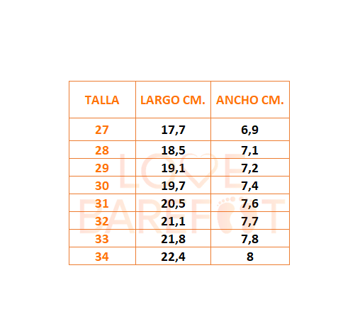 - Suma entre 0.8 y 1 cm a la longitud del pie más largo. ( SANDALIAS)