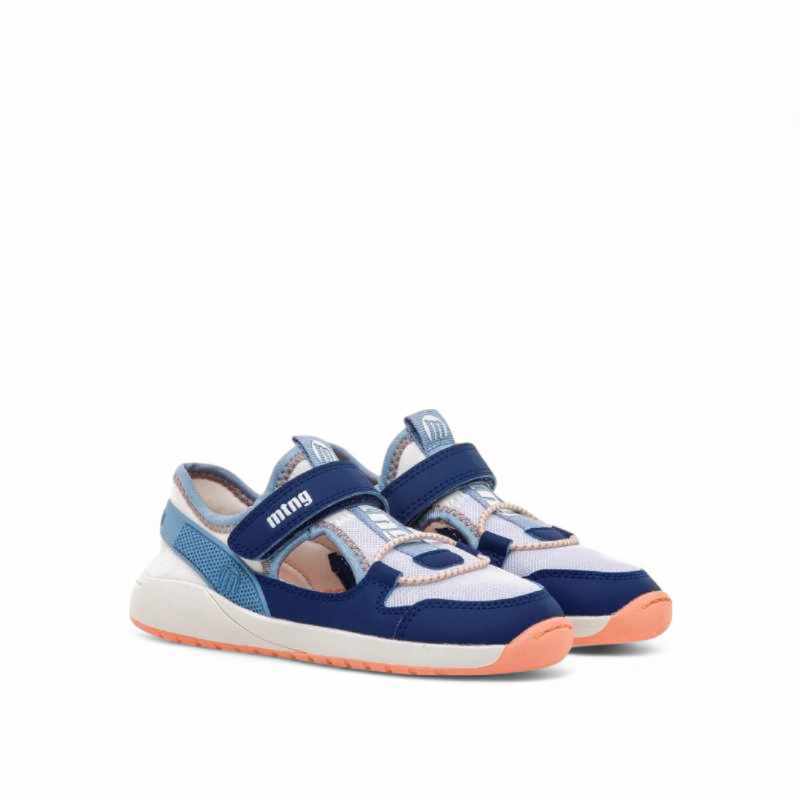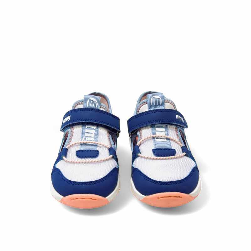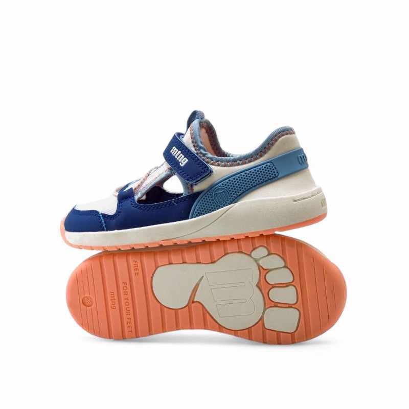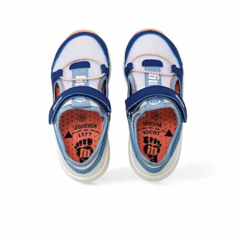 Las zapatillas barefoot Mustang 49046 Azul son unas zapatillas abiertas ideales para actividades de verano. Fabricadas con piel vegana certificada por INESCOP. Esta combinación de colores es una de las favoritas: Blanco, celeste, azul y detalles naranja. Permiten un desarrollo natural de los pies en crecimiento y su diseño moderno les va a encantar a toda la familia. Tus peques mo se las querrán quitar porque son cómodas y disfrutarán de cada paso.